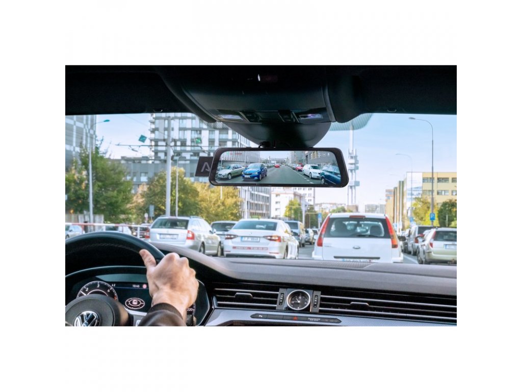 Celodisplejová zrcátková kamera, hlasové ovládání, GPS s hlášením radarů, zadní FULL HD kamera, WiFi a aplikace pro smartphone, jasný 9,66" IPS displej, systémy LDWS a FCWS, kvalitní záznam v noci, jednorázová instalace